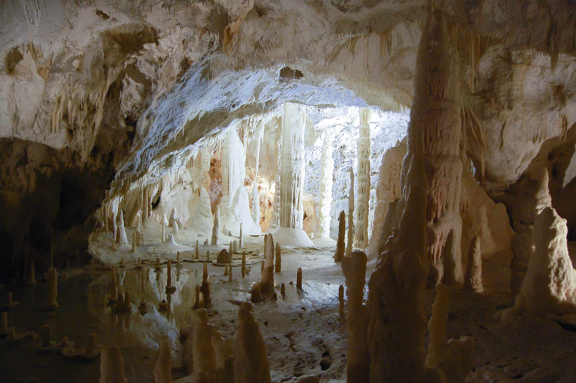 Le grotte di Frasassi che si trovano all’interno del Parco naturale regionale della Gola della Rossa e di Frasassi, in provincia di Ancona, rappresentano con i suoi 30 Km di estensione uno dei percorsi sotterranei più grandiosi e affascinanti del mondo. Sono delle grotte carsiche sotterranee la cui scoperta risale al 1948. Si può optare per un itinerario turistico, accessibile a tutti, o provare l’emozione di un giro speleologico.